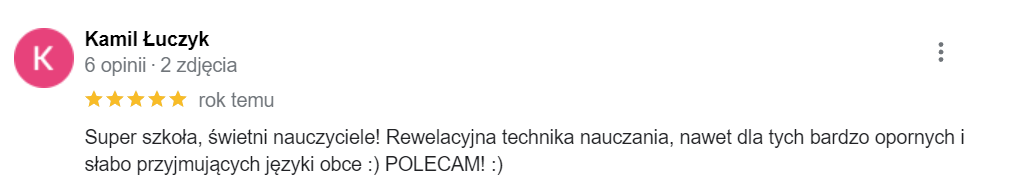 Uczymy autorską metodą opartą na Algorytmicznym Matrycowaniu Językowym, która gwarantuje szybkie poznanie najważniejszych słów, szybkie zrozumienie podstaw gramatyki oraz mierzalne efekty - widoczne od 1 lekcji.